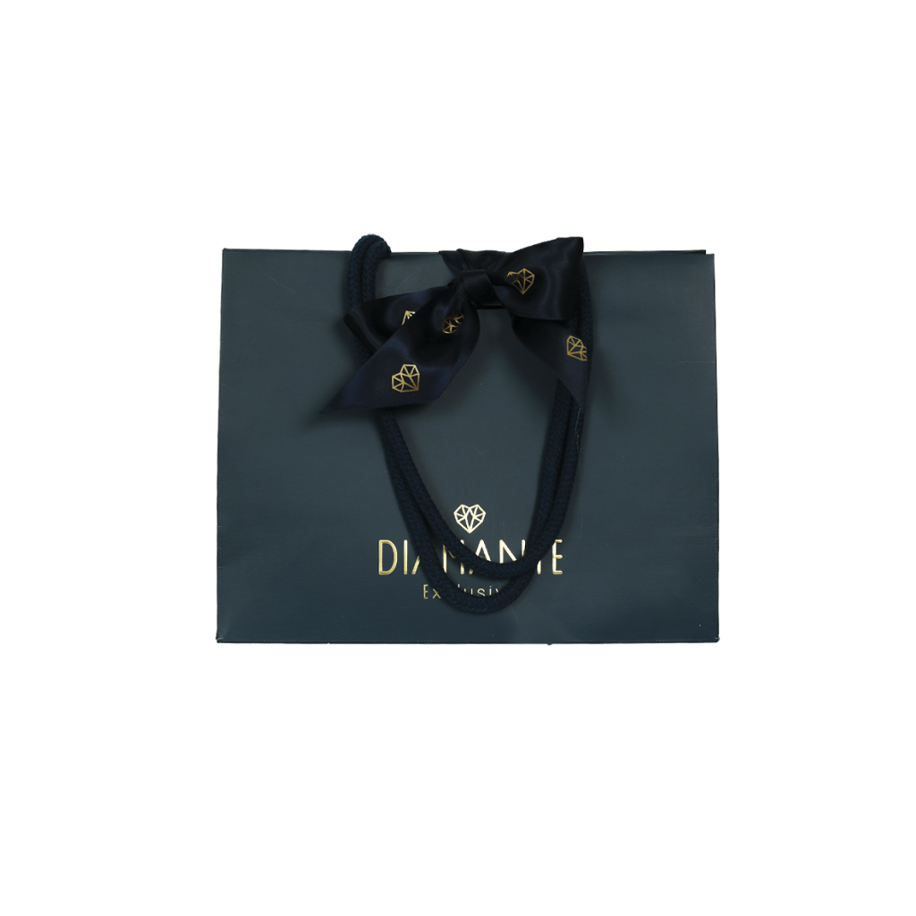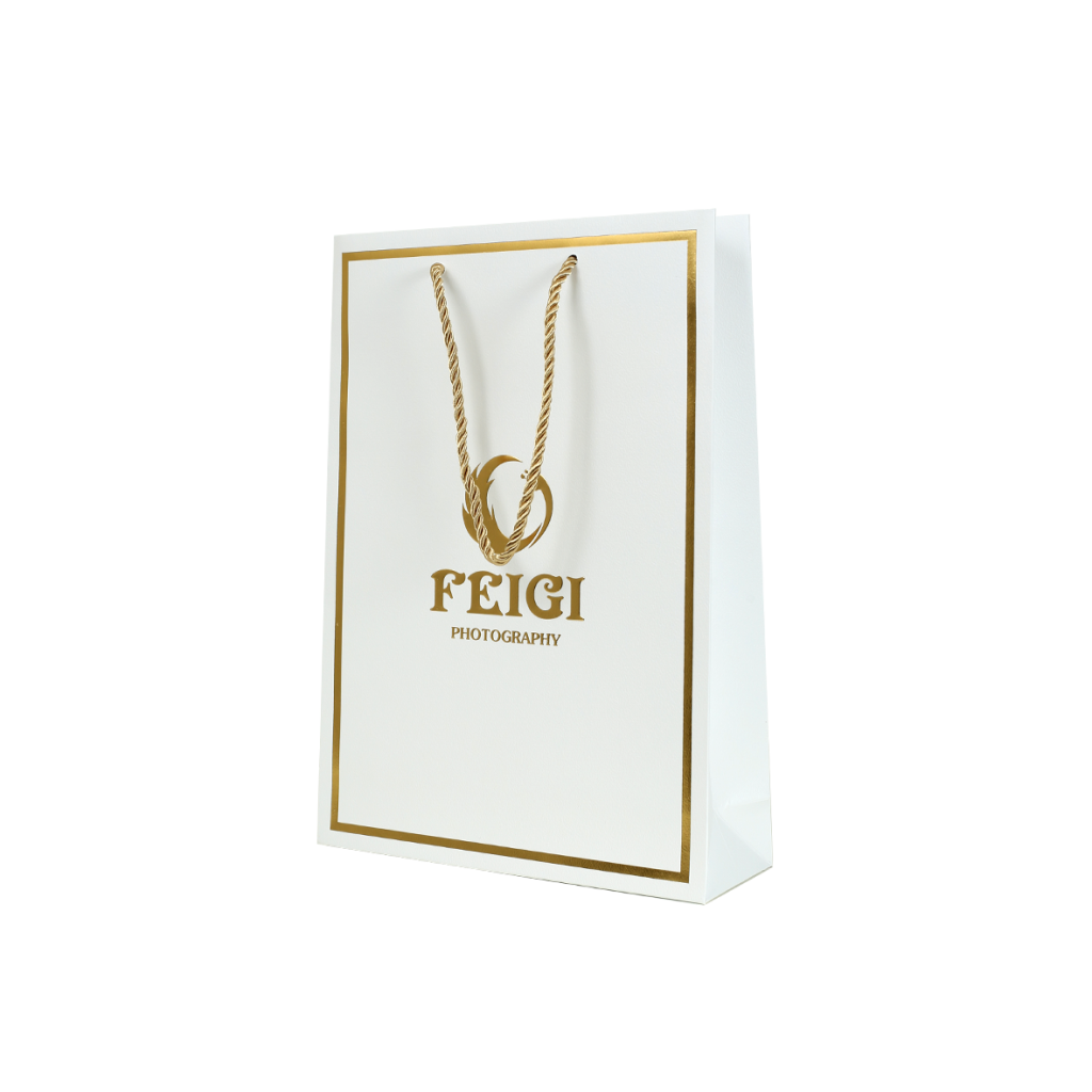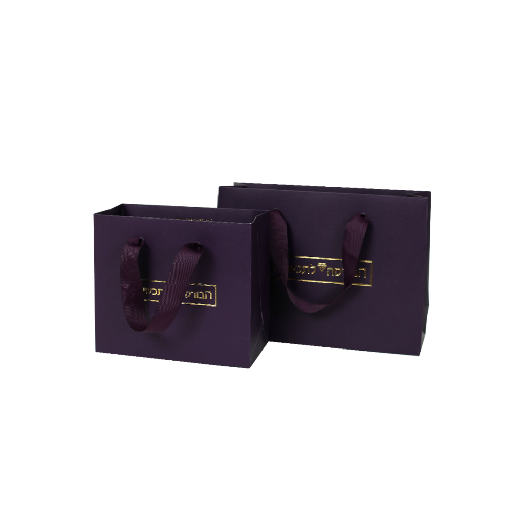 שקית קרטון יוקרתית עם הדפסה פנימית בצבע זהב בגימור לכה סלקטיבית