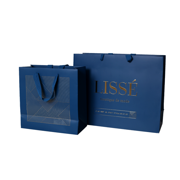 שקית כחולה בהטבעת זהב מובלטת וידיות ריבס חזקות